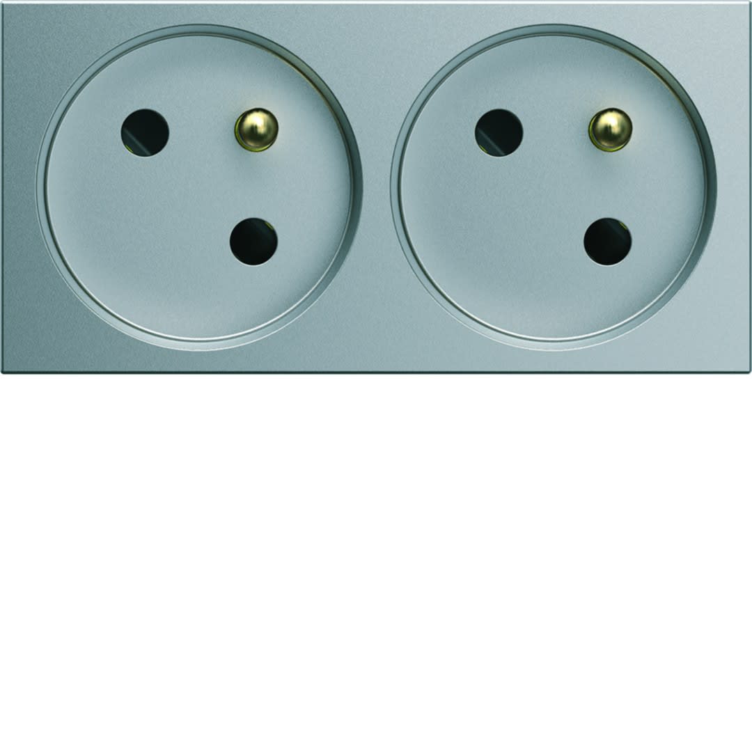 Hager - Prise de courant double speciale goulotte gallery 2P+T 16A titane - WXF422T