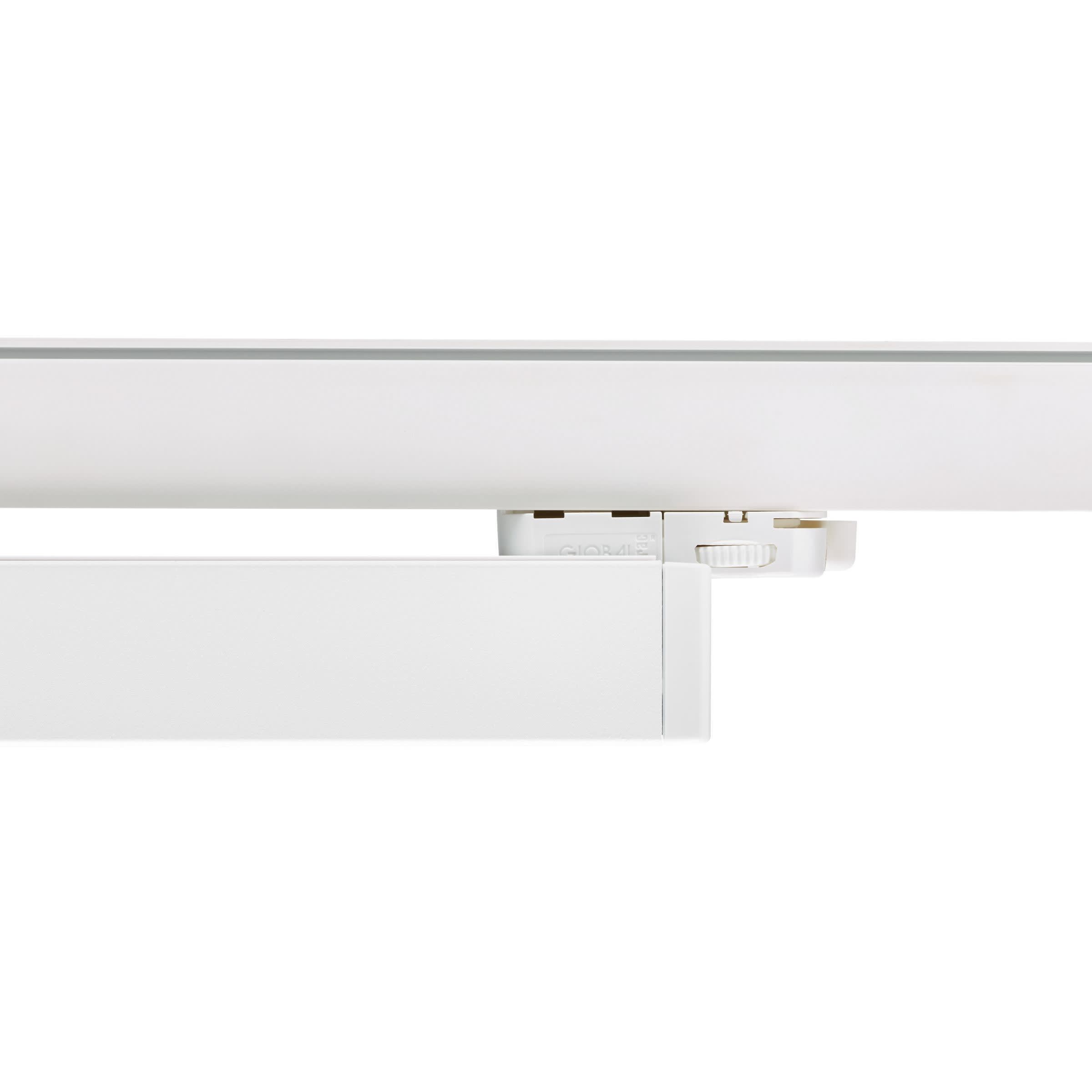 L1200 mm, Aluminium extrudé, Blanc, Bloc d’alimentation électrique (Marche/Arrêt), 8000 lm, 54 W, 148 lm/W, 4000 K, (0.38, 0.38) SDCM3, Miroir asymétrique, inclinaison de l'axe de 20°, Transparent, Polycarbonate, IP20 | Protection des doigts, IK02 | 0,2 J standard, Classe électrique I, Rail