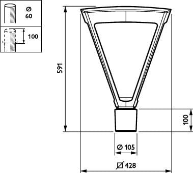 Urban road & street light, Aluminium, Noir, Top de mât pour diamètre 60 mm, Bloc d'alimentation régulant externe avec flux lumineux constant, Flux lumineux constant et DynaDimmer présélections fixes version 2, 4320 lm, 38.5 W, 112 lm/W, 4000 K, (0.380, 0.380) SDCM 5, CRI70, Distribution extensive 10, IP66 | Protection contre la pénétration de poussière, protection contre les jets d’eau, IK09 | 10 J, Classe de sécurité II, Protection contre les surtensions en mode différentiel jusque 10 kV et en mode commun jusque 10 kV, Câble 1,0 m avec prise compatible Wieland/Adels 2 pôles, Connecteur externe