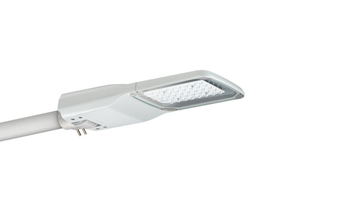 Fonte d’aluminium, Gris, Fixation latérale pour diamètre 48 à 60 mm, Bloc d'alimentation avec interface DALI, 10200 lm, 75 W, 136 lm/W, 3000 K, (0.43, 0.40) SDCM 5, CRI70, Distribution semi-intensive 50, IP66 | Protection contre la pénétration de poussière, protection contre les jets d’eau, Classe de sécurité II, Protection contre les surtensions en mode différentiel jusque 6 kV et en mode commun jusque 8 kV, 2 connecteurs à poussoir 5 pôles