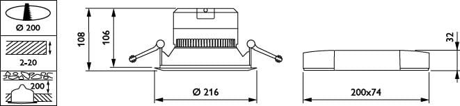 D200 mm, Aluminium, Blanc, Blanc de sécurité (RAL9003), Bloc d'alimentation avec interface DALI externe, 2200 lm, 20.5 W, 107 lm/W, 3000 K, (0.435,0.404) SDCM≦5, Réflecteur blanc, Transparent, Verre, IP20/54 | Protection des doigts ; protection contre l’accumulation de poussière, protection contre les éclaboussures, IK02 | 0,2 J standard, Classe électrique I, Connecteur à poussoir et soulagement de traction