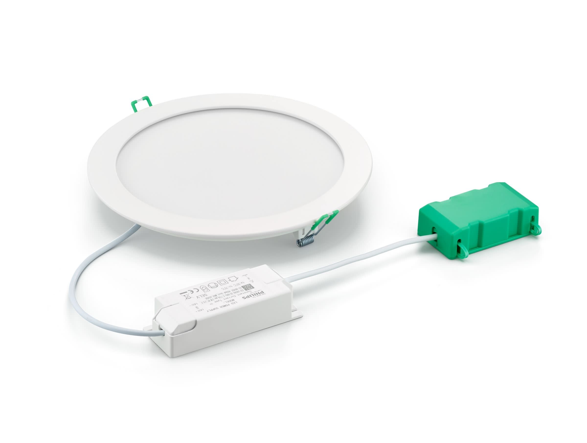 Nous accélérons l’extraordinaire potentiel de la lumière pour des vies plus agréables et un monde meilleur. CoreLine SlimDownlight s'inscrit dans la lignée des produits CoreLine : une gamme de luminaires innovants, simple et rapide à installer, facile à utiliser et délivrant une haute qualité de lumière.CoreLine SlimDownlight est une gamme innovante de luminaires encastrés et plafonniers, conçus pour remplacer les encastrés et plafonniers dotés de la technologie de lampe CFL-ni/CFL-l. Ils fournissent une lumière uniforme et naturelle, idéale pour les applications tertiaires. Avec ses économies d'énergie immédiates et sa plus longue durée de vie, la gamme constitue une solution économique et respectueuse de l'environnement. Simple et rapide à installer, CoreLine SlimDownlight est une solution idéale pour la rénovation, ses différents diamètres d'encastrement étant de taille standard. Fort d'un design extra plat, ce produit s'intègre à tous les types de plafonds, y compris ceux disposant d'un espace d'installation réduit. Des luminaires Interact Ready avec communication sans fil intégrée, entièrement compatibles avec les passerelles, capteurs et logiciels InterAct Pro sont également disponibles.