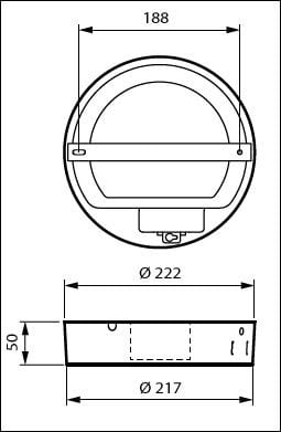 Surface-mounted, D205 mm, Fonte d’aluminium, Blanc, Blanc signalisation (RAL9016), Bloc d’alimentation électrique (Marche/Arrêt), 2100 lm, 21 W, 100 lm/W, 3000 K, (0.43657,0.40454) SDCM3, CRI80, Angle d’ouverture de faisceau 90°, Opale, Polystyrène, IP20/44 | Protection des doigts, protection des fils, protection contre les éclaboussures, IK02 | 0,2 J standard, Classe de sécurité II, Unité de connexion 2 pôles