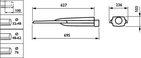 Road & street light, Fonte d’aluminium, Gris foncé, Ergot pour diamètre 32 à 48 mm, Bloc d’alimentation électrique (Marche/Arrêt), 2002 lm, 13.8 W, 145 lm/W, 4000 K, (0.38. 0.38) SDCM 5, CRI70, Distribution semi-intensive 50, IP66 | Protection contre la pénétration de poussière, protection contre les jets d’eau, IK09 | 10 J, Classe électrique I, Protection contre les surtensions en mode différentiel jusque 6 kV et en mode commun jusque 8 kV, Connecteur à visser