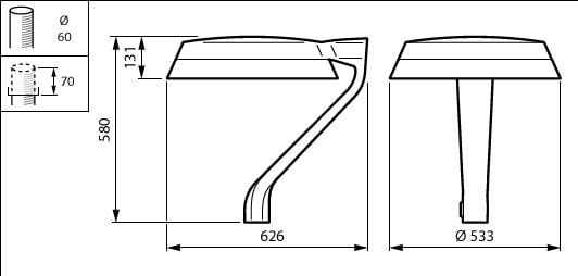 Urban road & street light, Fonte d’aluminium, Gris, Top de mât pour diamètre 62 mm, Bloc d’alimentation électrique (Marche/Arrêt), 3900 lm, 40 W, 98 lm/W, 3000 K, (0.410, 0.390) SDCM 5, CRI80, Distribution semi-intensive 10, IP66 | Protection contre la pénétration de poussière, protection contre les jets d’eau, IK09 | 10 J, Classe de sécurité II, Niveau de protection contre les surtensions standard, Connecteur interne