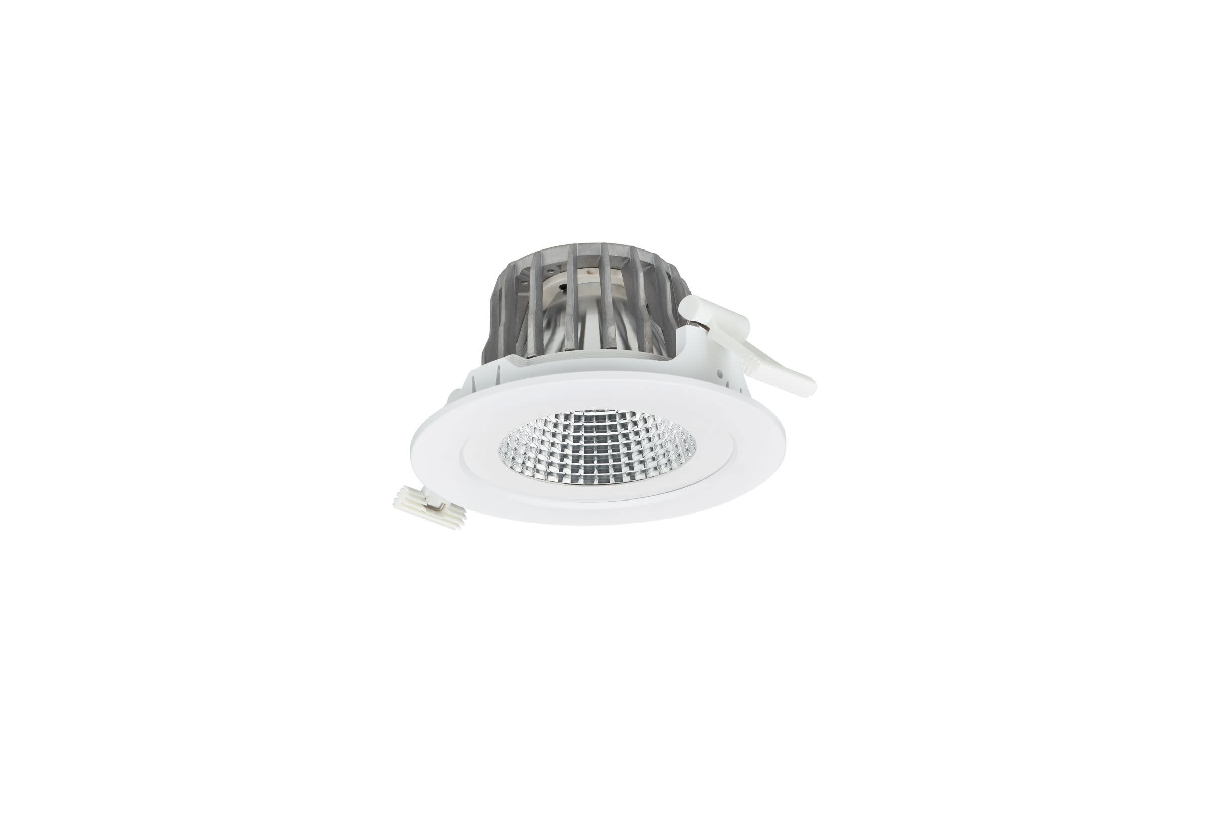 C/O D150 mm, Aluminium, Blanc, Poudrage simple couche, Bloc d'alimentation externe (Marche/Arrêt), 3000 lm, 22.5 W, 133 lm/W, 3000 K, (0.434, 0.403) SDCM 2, Faisceau extensif, Réflecteur PerfectAccent, IP20 | Protection des doigts, IK02 | 0,2 J standard, Classe de sécurité II, 2 connecteurs à poussoir 2 pôles, TP(a) diffuser flammability class