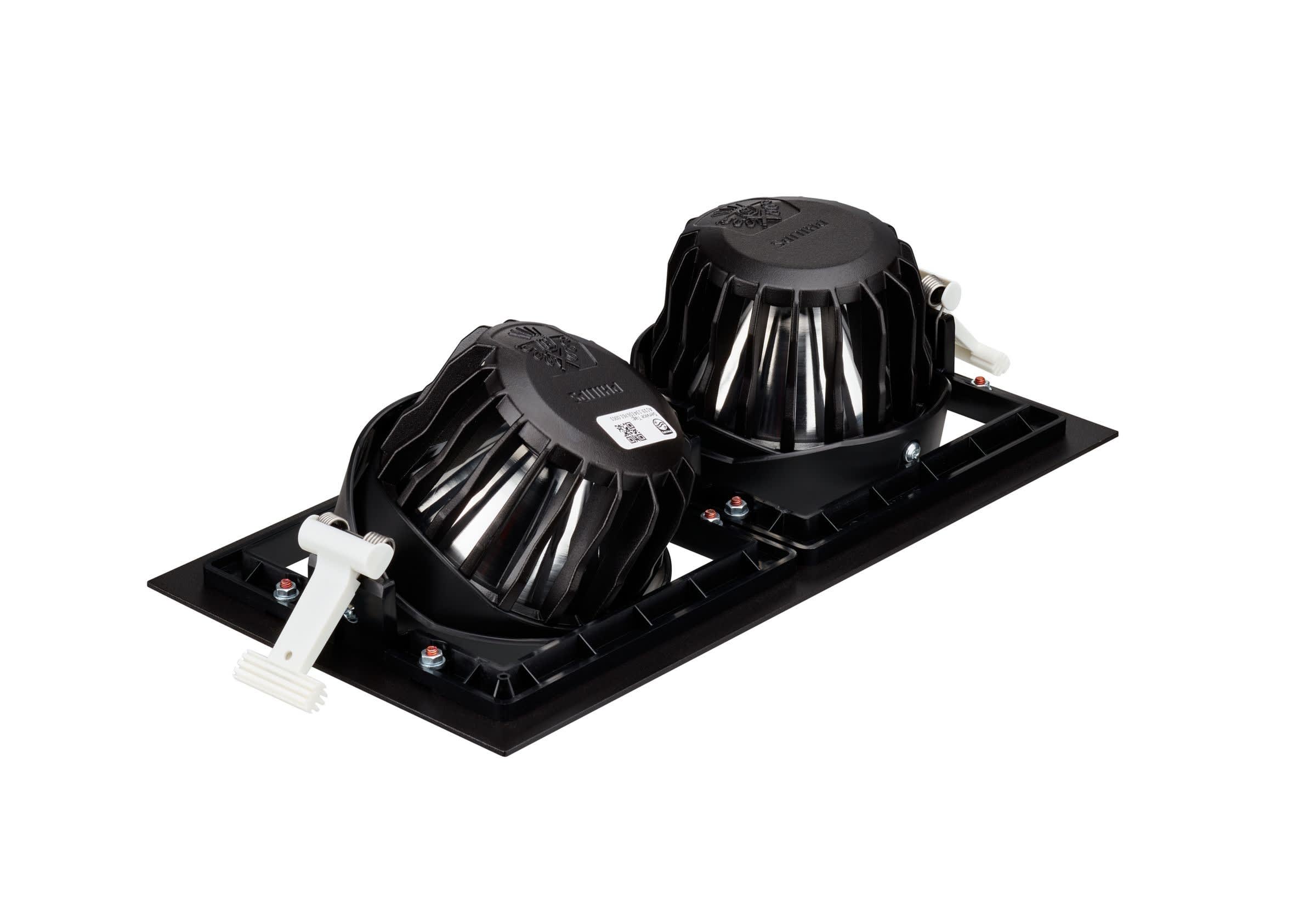 2 spots (*flux and performance values for 1 spot), C/O 154x304 mm, Aluminium, Noir, Poudrage simple couche, Système Interact Ready de pilotes sans fil pour éclairage externe, 4000 lm, 62 W, 129 lm/W, 3000 K, (0.434, 0.403) SDCM 2, Faisceau semi-intensif, Réflecteur PerfectAccent, IP20 | Protection des doigts, IK02 | 0,2 J standard, Classe de sécurité II, 2 connecteurs à poussoir 2 pôles, TP(a) diffuser flammability class