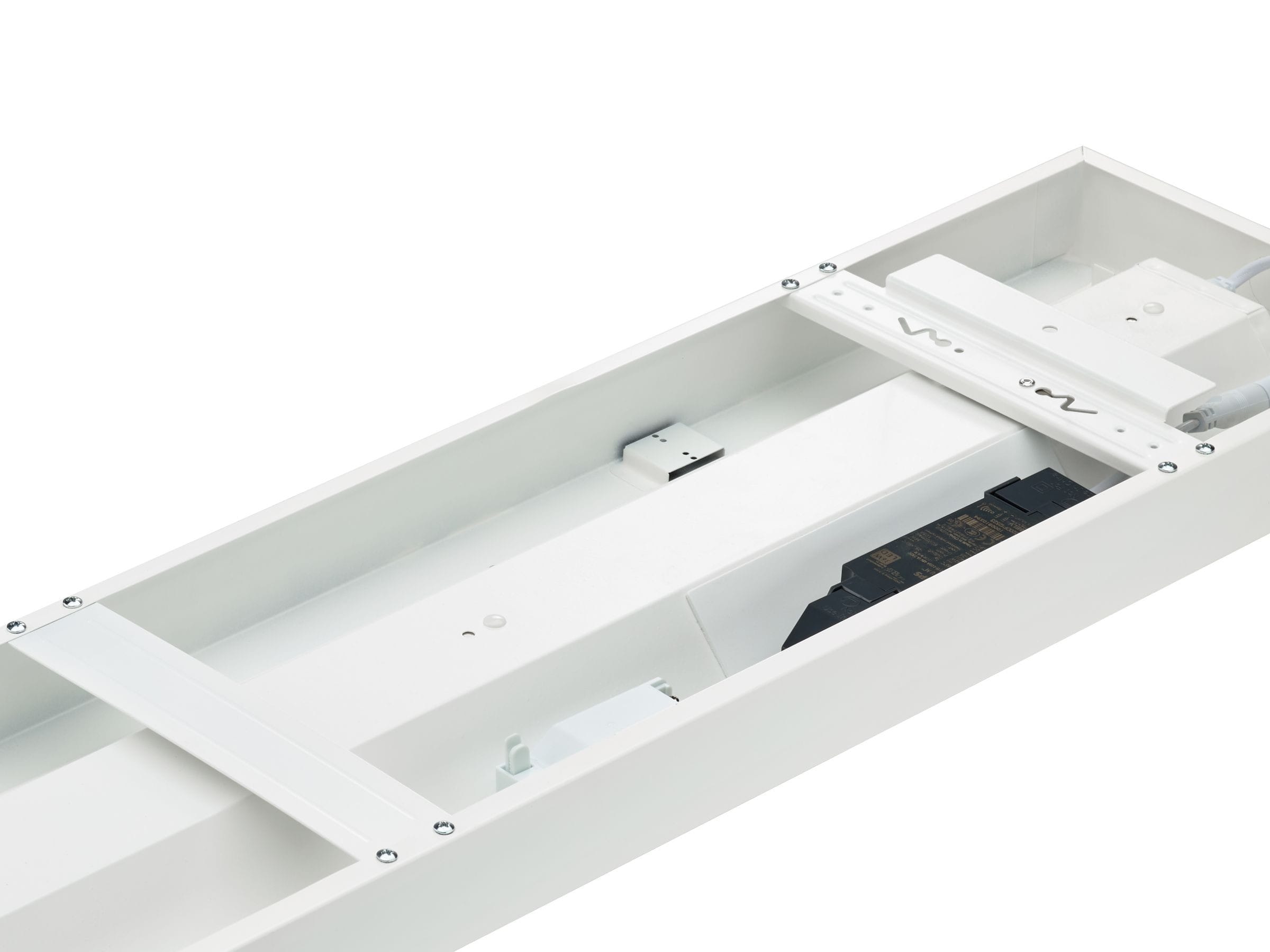 200x1200 mm, Acier, Blanc, Blanc de sécurité (RAL9003), Plafonnier, Système Interact Ready de pilotes sans fil, 4000 lm, 27.5 W, 145 lm/W, 3000 K, (0.44,0.40)SDCM3, UGR19, Conformité aux normes d’éclairage de bureau à faisceau extensif, Lentille microprismatique, Polycarbonate, IP20/44 | Protection des doigts, protection des fils, protection contre les éclaboussures, IK03 | 0,35 J renforcé, Classe de sécurité II, Câble avec connecteur 3 pôles, Connecteur à poussoir 3 pôles