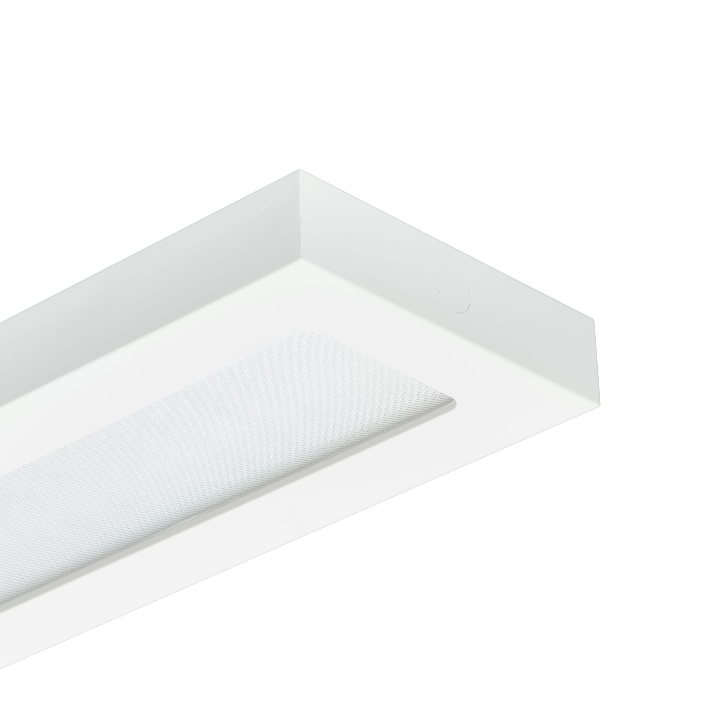200x1570 mm, Acier, Blanc, Blanc de sécurité (RAL9003), Plafonnier, Système Interact Ready de pilotes sans fil, 4000 lm, 27.5 W, 145 lm/W, 3000 K, (0.44,0.40)SDCM3, UGR19, Conformité aux normes d’éclairage de bureau à faisceau extensif, Lentille microprismatique, Polycarbonate, IP20/44 | Protection des doigts, protection des fils, protection contre les éclaboussures, IK03 | 0,35 J renforcé, Classe de sécurité II, Câble avec connecteur 3 pôles, Connecteur à poussoir 3 pôles
