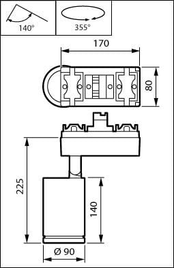 Compact, Maxos fusion variant (exposed driver box), Aluminium, Noir, Noir de sécurité (RAL9004), Système Interact Ready de gradation Dali, compatible communication par la lumière visible, 4000 lm, 32 W, 124 lm/W, PremiumColor, 3000 K, (0.422,0.386)2, CRI90, Réflecteur métallique haute réflexion - faisceau ultra-extensif 80°, IP20 | Protection des doigts, IK02 | 0,2 J standard, Classe de sécurité II, Rail 3C