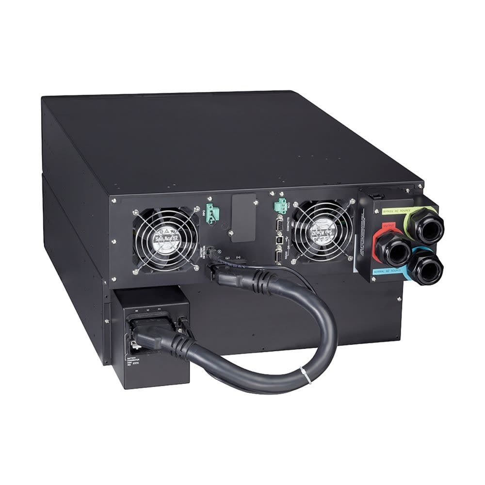 Eaton 9SXOnduleur On-Line Double Conversion de 5kVA à 11kVA. Facteur de puissance en sortie de 0,9 (1000VA = 900W). Rendement inégalé de 95% en mode on-line double conversion. Sortie Bornier ou prises IEC selon modèle. Fonction prises programmables à distance inclus selon modèle. Ecran LCD. Possibilité d'extension d'autonomie. Format Tour ou Rack. Port Série, USB et contacts en standard. Carte SNMP/Modbus/Contacts en option. Batterie brevetée ABM (double leur durée de vie). Garantie 2 ans batteries incluses (extension garantie possible en option).