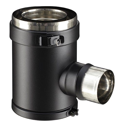 Té arrière de sortie de fumée Raccordement, double paroi PGI Poujoulat diam.100/150 - 090° Noir