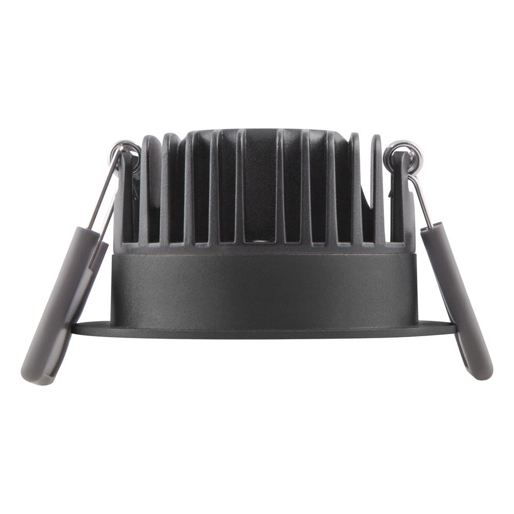 Spot LED en alu, colerette noire. Classe II, 2700K, 80lm/W, sélection de puissance (4W/6W/8W) par interrupteur, 50 000h L70. Lumière qualitative (IRC>90, SDCM?3), gradable (TRIAC). Découpe Ø68mm, Dim (Øxh): Ø81x42mm. Garantie 5 ans.