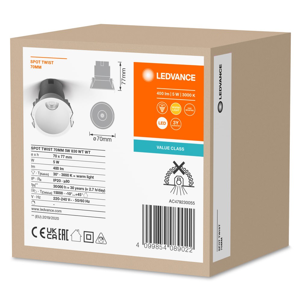 Ledvance - LDV SPOT TWIST ø70mm 5W/3000K 400lm 30° Blanc Spot décoratif LEDVANCE - 089022