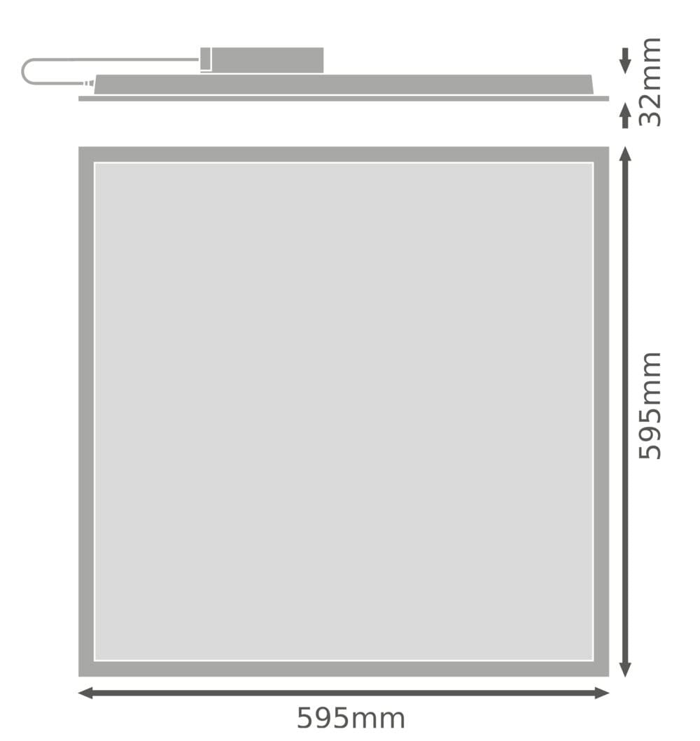 Panel, faible éblouissement, 600 x 600 mm. Caractéristiques du produit: Durée de vie (L70/B50) : jusqu'à 50 000 h (à 25 °C). Avantages du produit: Réduction de l’éblouissement appropriée (UGR < 19). Faible scintillement grâce à un ballast électronique spécial. Économies d'énergie grâce à une efficacité du système de 100 lm/W. Convertisseur externe pour plus de flexibilité et une installation facilitée. Garantie de 3 ans. Zones d'application: Remplacement direct des luminaires avec lampes fluorescentes. Bureaux, salles de conférence. Zones d'accueil, couloirs, ascenseurs. Convient aux systèmes encastrés avec une grille de dimensions 600 x 600 mm. Technique / Accessoires: Accessoires pour plusieurs options de montage disponibles. Ballast externe inclus.