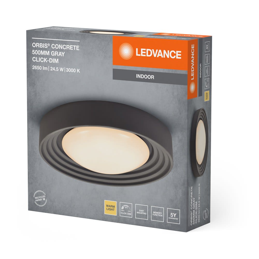 Ledvance - LDV Plafonnier CONCRETE Ø 500 24,5/3000K 1 800lm Click Dim gris LEDVANCE - 278808