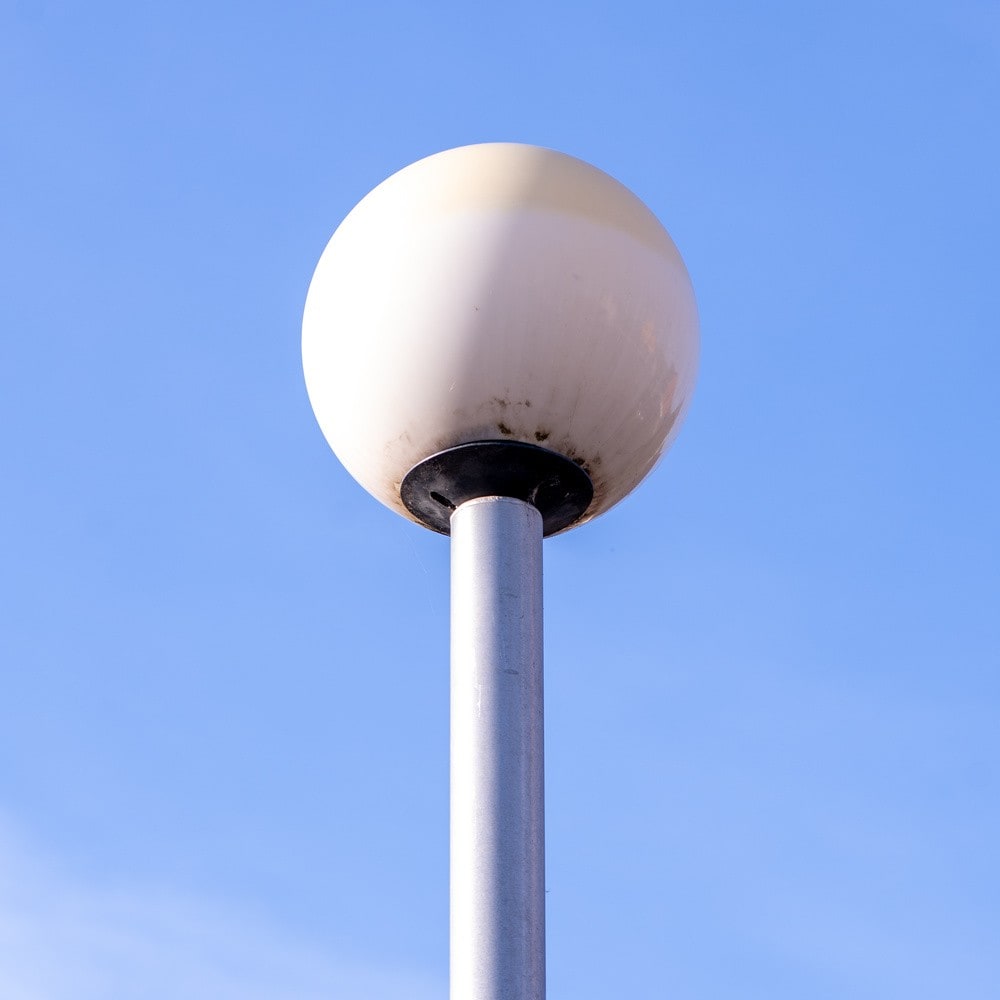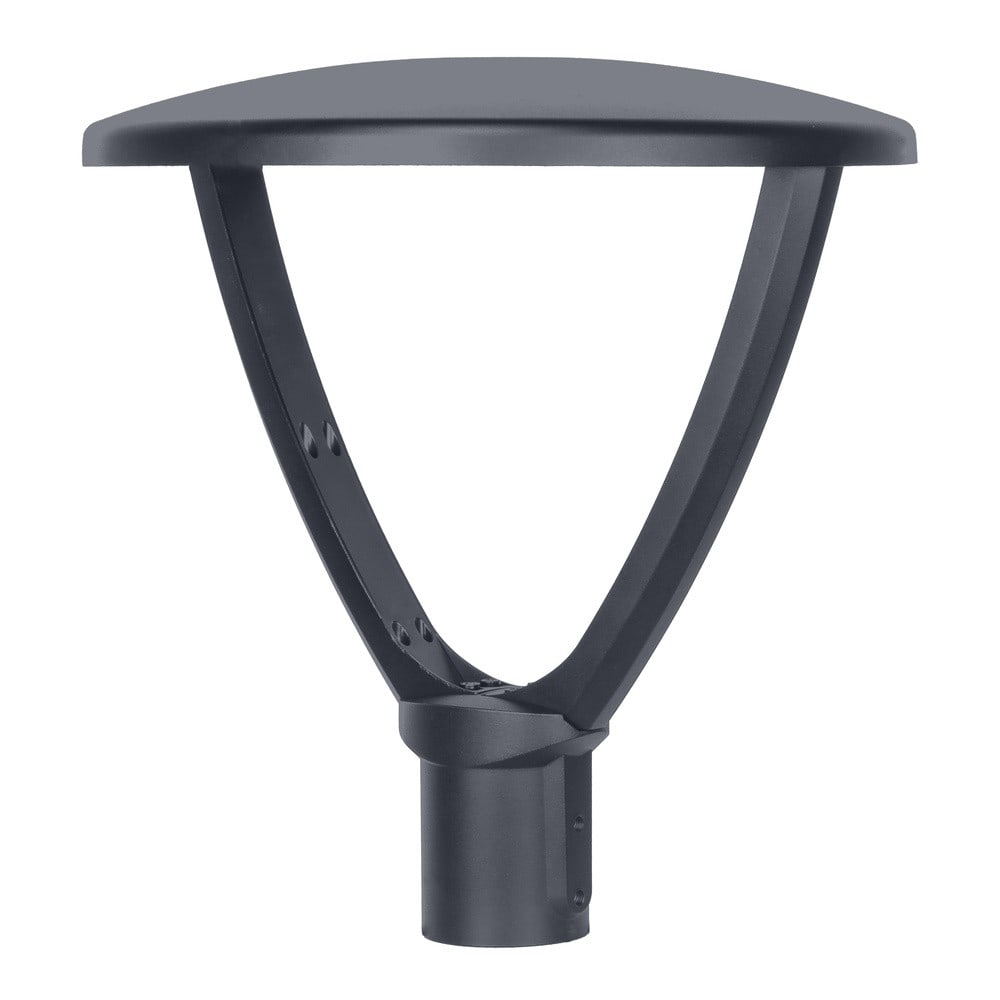 Lanterne de classe II en alu gris (RAL7024). Remplacement des lum. boules. Sélecteur de puissance et de température de couleur. Jusqu'à 136lm/W, IRC>80, 100 000h L80. Optique 165°x65°. Température -30…+50°C. Dim: ø395x417mm. Garantie 5 ans.