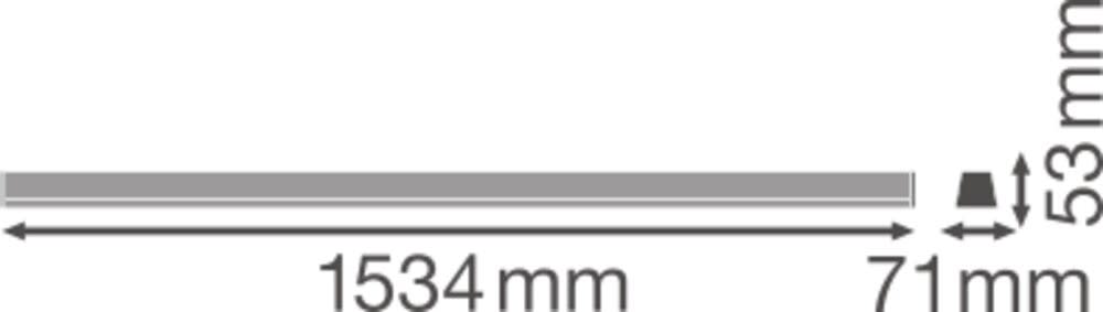Module lumineux avec double distribution lumineuse asymétrique. Caractéristiques du produit: Distribution lumineuse double asymétrique avec angle de faisceau de 2x35 °. Efficacité lumineuse : jusqu'à 135 lm / W. Prises à énergie fixe pour raccordement électrique. Boîtier en aluminium de haute qualité. Type de protection : IP20. Selon le langage de conception unifié LEDVANCE (conception SCALE). Avantages du produit: Conception optique innovante avec technologie rod lense sur toute la longueur du luminaire. Les supports intérieurs empêchent le luminaire de tomber pendant le montage. Raccordement électrique simple au rail d’alimentation par montage à encliquetage. Distribution lumineuse bidirectionnelle pour l’éclairage et le balisage des étagères. Équerres de montage invisibles après le montage. Le système prêt à l'emploi permet une installation facile. Design de valeur. Ligne continue avec jusqu'à 81 luminaires (ON/OFF) / 91 (DALI) et une longueur totale de 124 m (ON/OFF) / 151 m (DALI) possible. Économies d’énergie pouvant atteindre 65 % par rapport aux luminaires avec 2 lampes T5 de 80 W. Version avec alimentation DALI disponible. Zones d'application: Remplacement direct des luminaires avec lampes fluorescentes compactes. Magasins discount, supermarchés. Technique / Accessoires: Rail avec 5 (On-Off) ou 7 (DALI) câbles intégrés.