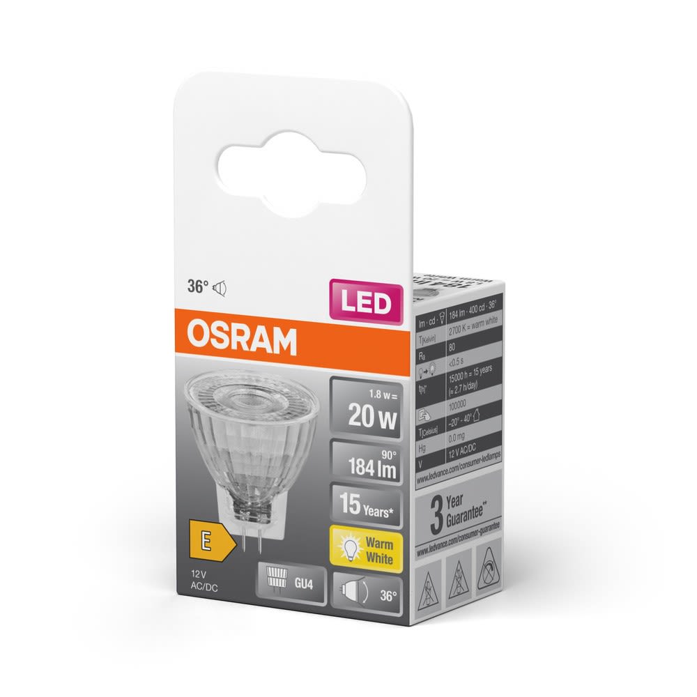 Lampes LED à réflecteur. Caractéristiques du produit: Alternative LED professionnelle aux lampes halogènes MR11. Lampes sans mercure. Avantages du produit: Durée de vie allant jusqu'à 15 000 heures. Consommation d'énergie inférieure à celle des lampes à incandescence ou halogènes. Remplacement aisé grâce au culot GU4. Zones d'application: Panneau d'affichage et vitrines. Musées, galeries d'art. Salles d'exposition. Intérieurs résidentiels. Comme spotlight pour le balisage de chemins, de portes, d'escaliers, etc.. Utilisation en extérieur uniquement dans des luminaires d'extérieur appropriés. Conseils de sécurité: Ne touchez pas la lampe si elle est cassée.. Ne doit pas être utilisé si l'ampoule extérieure est défectueuse..