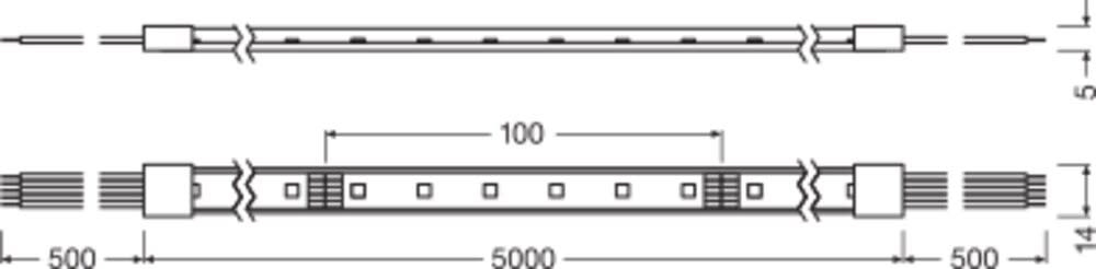 Rubans LED RGBW protégés IP66 - Haute performance - 1000 lm/m pour les exigences élevées. Caractéristiques du produit: Ruban LED flexible et sécable avec LED blanches et RGB. Plus petite unité de coupe : 100 mm. Durée de vie (L70 / B50): jusqu'à 40000 h à Tc max. ≤ 85°C. Gradable par impulsions (modulation de largeur d'impulsions). Type de protection : IP66. Hautement résistant aux UV. Résistant aux ambiances salines. Avantages du produit: Grande gamme d'options de conception grâce aux bandes LED RGBW longues et flexibles. Installation facile, pas d'outils nécessaires pour la connexion. Montage facile grâce au ruban auto-adhésif. Flexibilité maximale grâce à une large gamme d'accessoires. Connexion simple grâce aux câbles intégrés de chaque côté. Bonne qualité de lumière blanche grâce aux LED blanches dédiées.