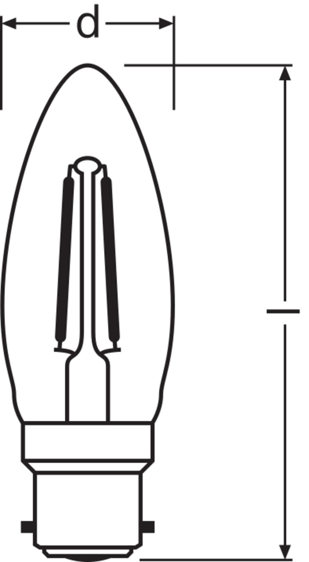 Lampes LED, forme flamme. Caractéristiques du produit: Lampes LED professionnelles pour tension secteur. Non gradable. Bonne qualité de la lumière ; indice de rendu des couleurs Ra: ≥ 80; chromaticité constante. Durée de vie jusqu'à 15 000 h. Lampe en verre. Avantages du produit: Lampes avec technologie de « filament » LED innovante. Conception, dimensions, flux lumineux comparables à une lampe à incandescence classique ou halogène. Pas d'émission d'UV ni d'IR dans le faisceau lumineux. Allumage instantané. Puissance thermique plus faible (par rapport au produit de référence standard). Peut remplacer facilement les lampes standard. Consommation d'énergie inférieure à celle des lampes à incandescence ou halogènes. Zones d'application: Idéal pour les installations décoratives. Applications domestiques. Éclairage général. Utilisation en extérieur uniquement dans des luminaires d'extérieur appropriés. Conseils de sécurité: Ne touchez pas la lampe si elle est cassée.. Ne doit pas être utilisé si l'ampoule extérieure est défectueuse..