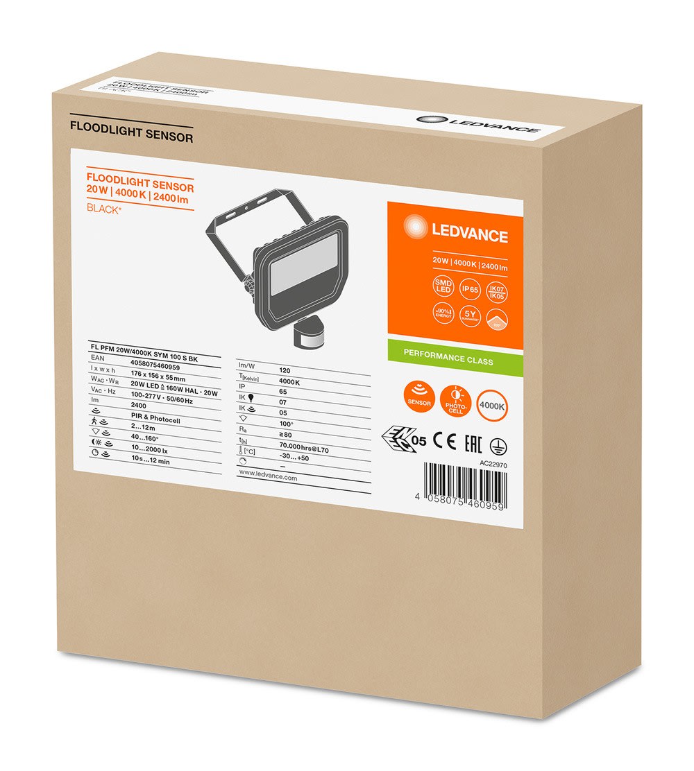Ledvance - LDV FL PFM SYM100 S 20W/4000K 2400lm IP65 100° Noir Projecteur Sensor LEDVANCE - 460959