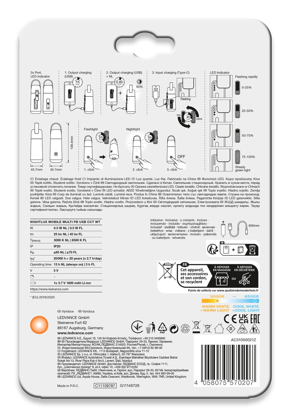Ledvance - NIGHTLUX MOBILE MULTI PB USB CCT BLANC LEDVANCE - 570207