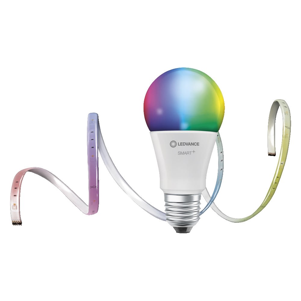Rubans LED flexibles pour l'intérieur avec technologie Zigbee. Caractéristiques du produit: Bandeau flexible, auto-adhésif et RGBW avec fonction d’éclairage connecté sans fil. Contrôle des couleurs RGB, env. 16 millions d’options de couleur réglable. Température de couleur réglable avec Tunable White : 2 000 à 6 500 K. Gradable. Protocol : ZigBee. Durée de vie : jusqu'à 20 000 h. Contrôlable via le système smart home compatible (passerelle et application) ou via l'interrupteur SMART+ Switch. Pour une connexion complète, la connexion à un système smart home (passerelle et app) compatible est requis. Extensible jusqu'à 5 mètres. Controllable via SMART+ App (with minimum Android 8.0 or iOS 14.0). Avantages du produit: Divisible en 3 parties et extensible avec SMART+ FLEX 2P EXTENSION. Facile à installer et à utiliser. Zones d'application: Éclairage général. Technique / Accessoires: Le contrôle via l'application nécessite un système LIGHTIFY (application et passerelle) ou tout autre système Smart home compatible.. Alimentation incluse (excepté pour l'extension du produit). For control via SMART+ App, a smartphone or tablet is required (with minimum Android 8.0 or iOS 14.0). Conseils de sécurité: Si le câble ou le cordon flexible externe de ce luminaire est endommagé, il doit être remplacé exclusivement par une personne qualifiée afin d'éviter tout danger.. Afin de réduire le risque d'étranglement, le câblage flexible connecté à ce luminaire doit être fixé efficacement au mur si le câblage est à portée de main.. Ne pas brancher le cordon lumineux sur l'alimentation lorsqu'il est enroulé sur une bobine. Ne pas utiliser le ruban lumineux lorsqu'il est recouvert ou encastré dans une surface. Le cordon lumineux ne doit pas être utilisé dans son emballage. Ne pas ouvrir le ruban lumineux..