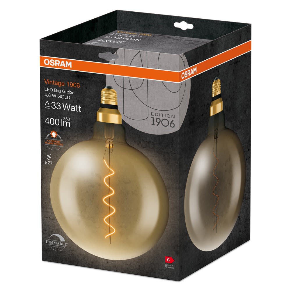 LED OSRAM - Vintage 1906 DIM - Globe200 - 822 - E27 - 300° - 4,8W Equiv 33W - 400lm - Gradable - Ra80 - ON/OFF x 100 000 - ø200 - 2200K - 15000h - Classe G - Garantie 3 ans