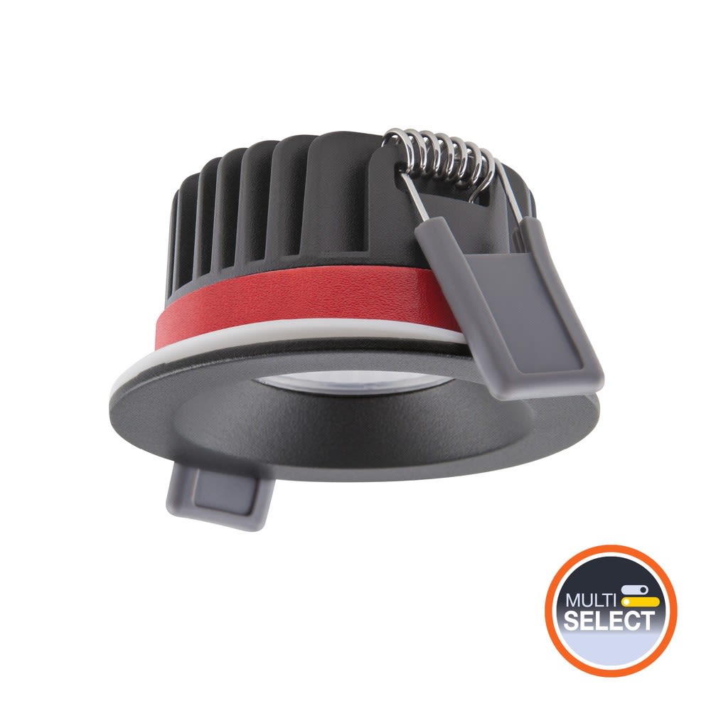 Spot LED en alu, colerette noire. Classe II, 3000K, 85lm/W, sélection de puissance (4W/6W/8W) par interrupteur, 50 000h L70. IRC>90, SDCM?3, gradable . Résiste 30min au feu. Joint étanchéité. Découpe Ø68mm, Dim: Ø81x42mm. Garantie 5 ans.