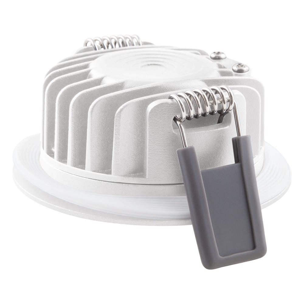 Spot encastré pour plafonds à faible consommation d'énergie et étroits, fixe. Caractéristiques du produit: Indice de rendu des couleurs Ra : 90. Type de protection : IP65 (intérieur). Beam angle: 36°. Corps en fonte d'aluminium. Ressorts protégés par coussinet en silicone. Gradable (avec de nombreux gradateurs classiques, voir également www.ledvance.fr/dim). Câblage traversant possible. Avantages du produit: Construction hermétique pour réduire les fuites d'air et limiter les pertes d'énergie. Recouvrement par de nombreux types de matériaux d'isolation thermique. Le profil bas permet une installation dans des vides de plafond peu profonds. Powerselect : réglage de la luminosité via des commutateurs DIP sur le pilote. Remplacement simple du convertisseur externe. Installation et connexion électrique facile grâce aux borniers automatiques. Design SCALE : esthétique, matériaux de qualité et taille réduite pour s'adapter à tous les environnements. Garantie de 5 ans. Zones d'application: Remplacement direct des spots encastrés avec lampes halogènes. Plafonds dans les maisons basse énergie. Éclairage général. Chambres d'hôtel et couloirs. Bars, restaurants. Éclairage d'accentuation. Intérieurs résidentiels. Technique / Accessoires: Appareillage de commande externe inclus avec commutateurs DIP pour sélectionner la puissance lors de l'installation. Conseils juridiques: Les conseils d'installation de la notice d'utilisation actuelle (www.ledvance.com) doivent être respectés. Conseils de sécurité: S'il y a une feuille de protection contre l'humidité, l'entretoise SP HOLDER doit être utilisée !. Tous les branchements électriques doivent être effectués par une personne qualifiée.. Attention, risque de choc électrique..