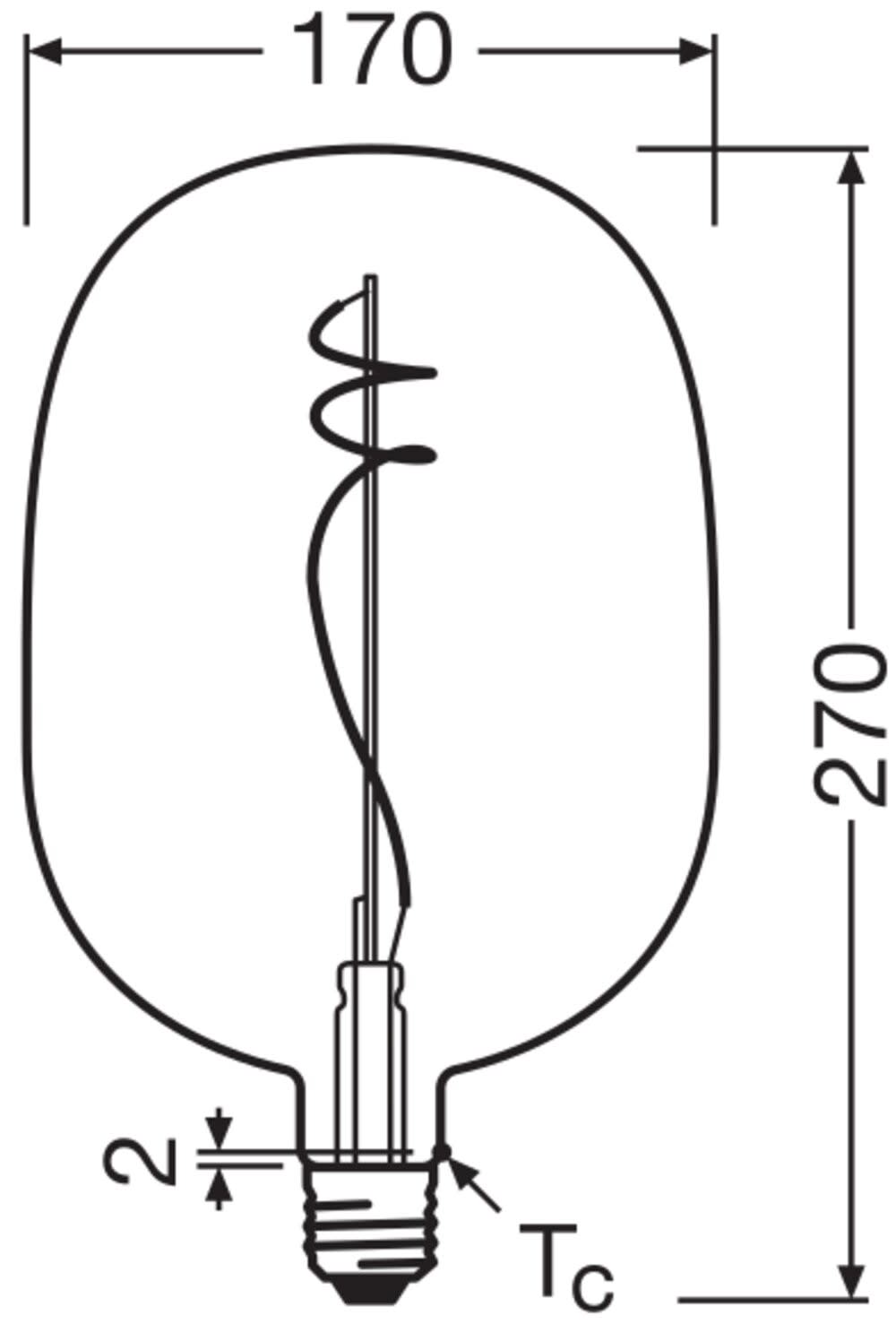 Lampes LED, édition vintage, forme d'ampoule spéciale. Caractéristiques du produit: Lampes LED disponibles pour tension secteur. Lampe en verre. Durée de vie jusqu'à 15 000 h. Ouverture du faisceau : jusqu'à 360°. Bonne qualité de la lumière ; indice de rendu des couleurs Ra: ≥ 80; chromaticité constante. Avantages du produit: Consommation d'énergie inférieure à celle des lampes à incandescence ou halogènes. Allumage instantané. Peut remplacer facilement les lampes standard. Lampes avec technologie de « filament » LED innovante. Zones d'application: Idéal pour les installations décoratives. Applications domestiques. Éclairage général. Utilisation en extérieur uniquement dans des luminaires d'extérieur appropriés. Conseils de sécurité: Ne touchez pas la lampe si elle est cassée.. Ne doit pas être utilisé si l'ampoule extérieure est défectueuse..