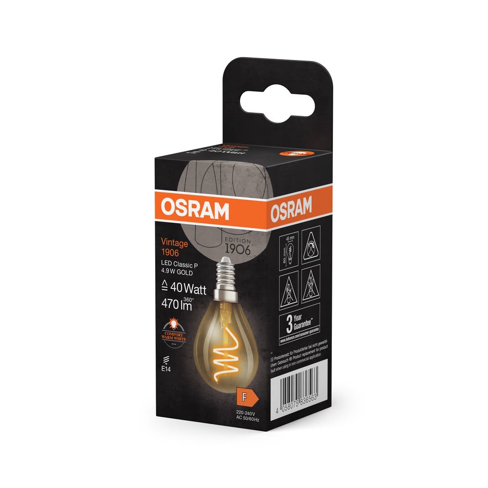 Vintage 1906 LED CLASSIC P Sphérique FILAMENT SPIRALE DIMMABLE- Ambre - E14 - 4,9 W - 470 lm - 2200 K - Classe F - 15000 h - Garantie 3 ans