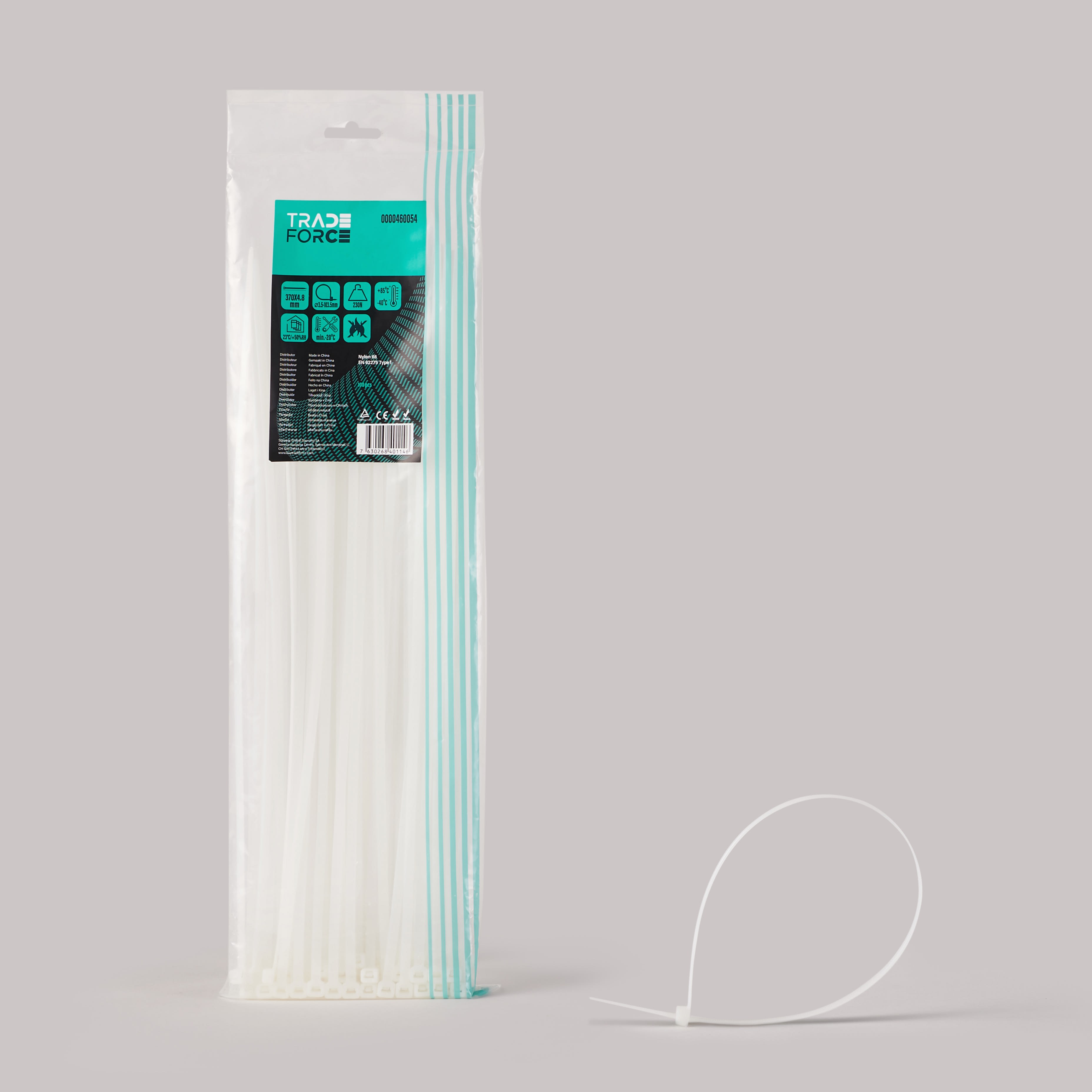 TradeForce - 100 colliers industriels de cablage , 370 x 4,8 mm, incolore , int - 0000460054
