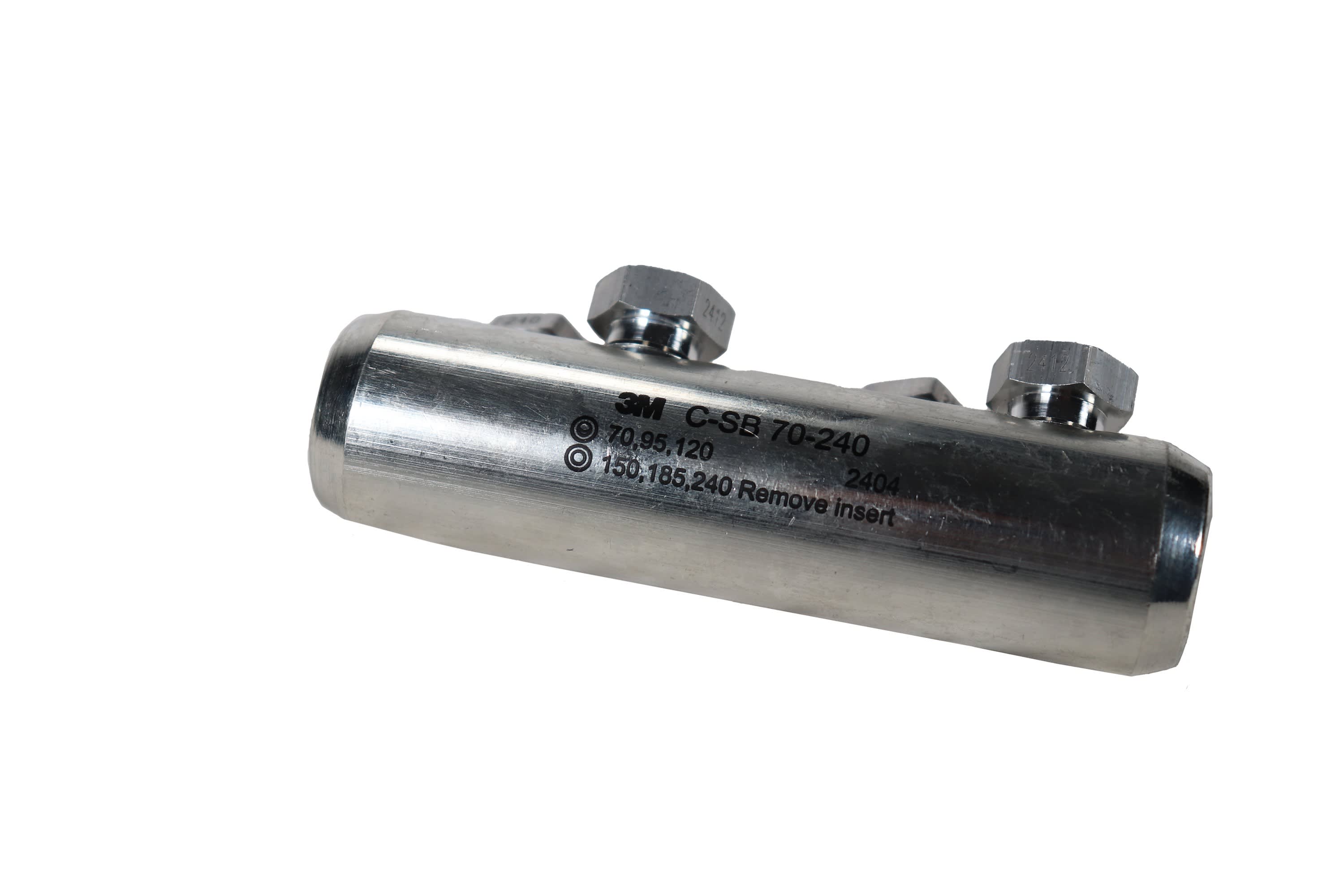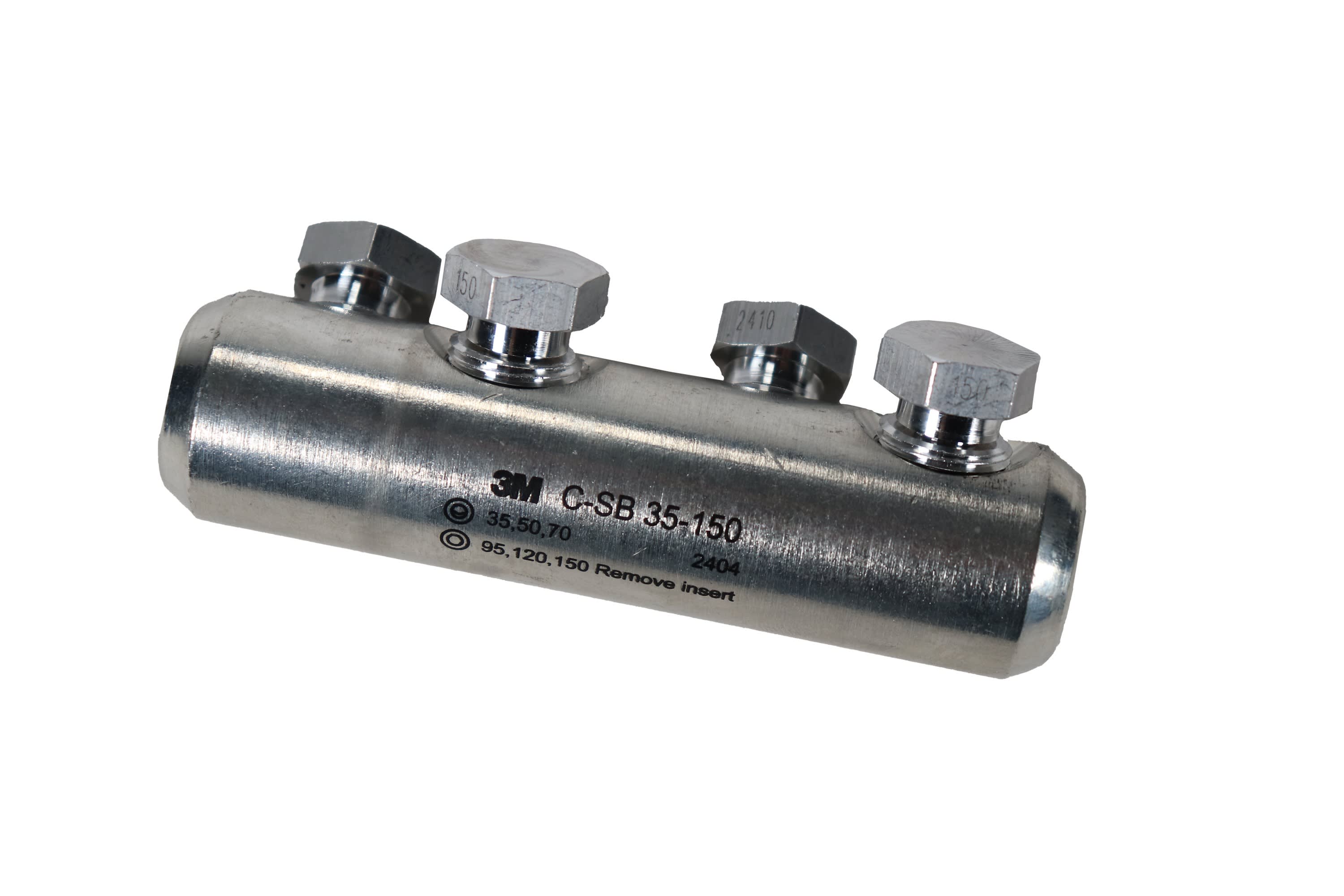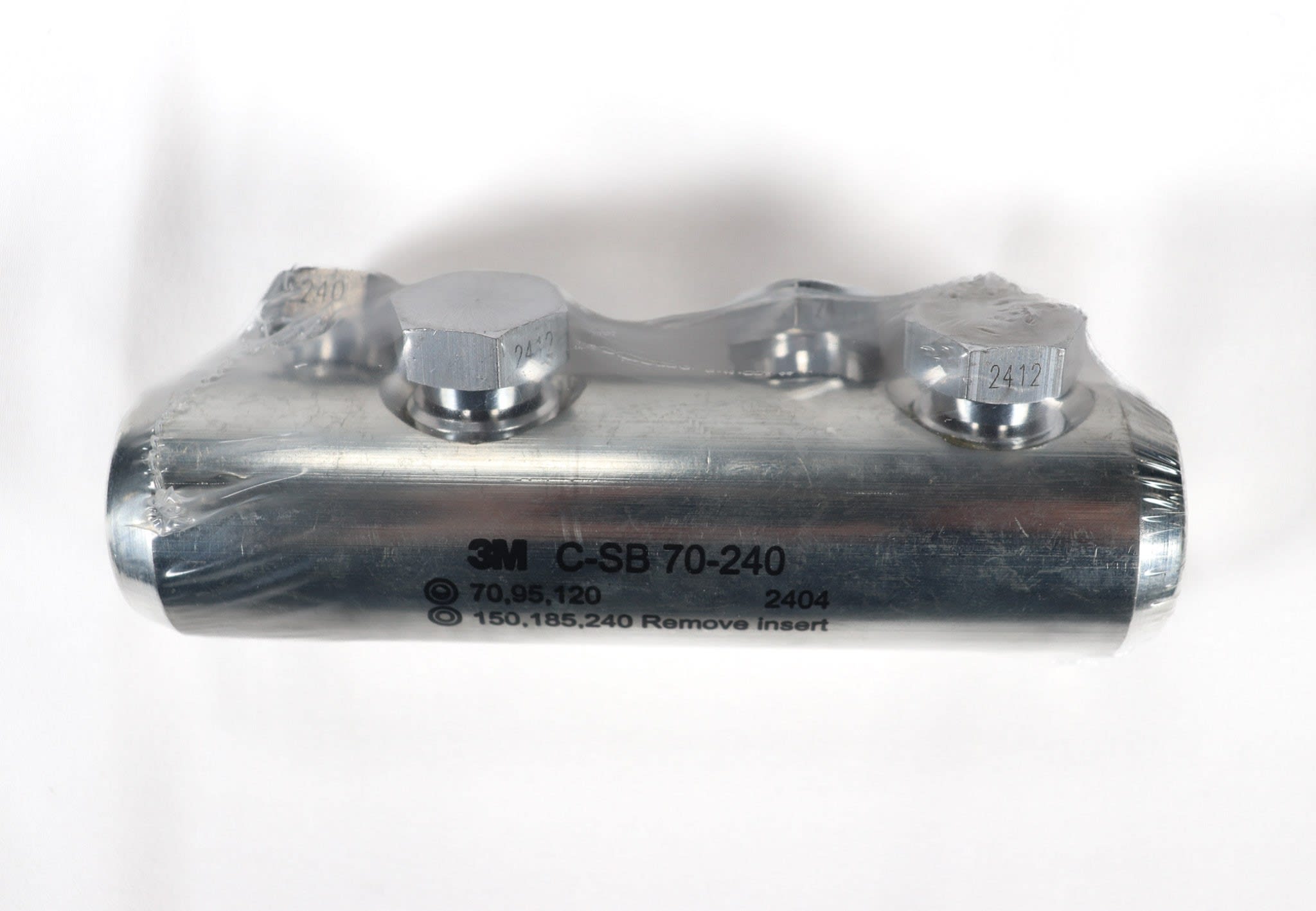 Raccord de jonction 3M™ C-SB sont des cosses à serrage mécanique en alliage d'aluminium conçus pour connecter des câbles et des équipements électriques. Adaptées aux conducteurs IEC 60228 jusqu'à 36 kV, ces cosses couvrent une large gamme de sections de 35 mm² à 630 mm² avec seulement quatre tailles. La conception du couple permet une installation à l'aide d'une clé à douille ou d'une clé à molette seulement, tout en maintenant une longueur et un diamètre extérieur constants après l'installation.
