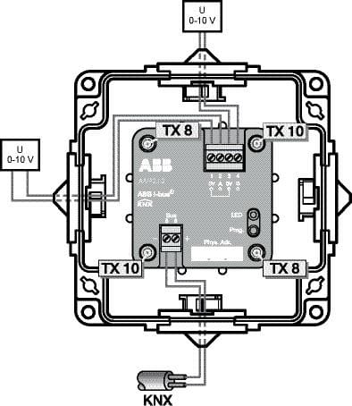 L'actionneur analogique convertit les télégrammes KNX en signaux de tension (0… 10 V). Ces signaux de sortie analogiques sont utilisés pour influencer les processus de régulation. Par exemple, les appareils pour des applications de chauffage, de climatisation ou de ventilation peuvent être réglés dans leur fonctionnement en fonction des informations transmises via le système de bus. Cet actionneur analogique est un dispositif double avec un boîtier pour un montage en surface. L'outil ABB i-bus est pris en charge pour un diagnostic avancé et une mise en service améliorée.