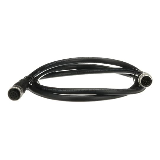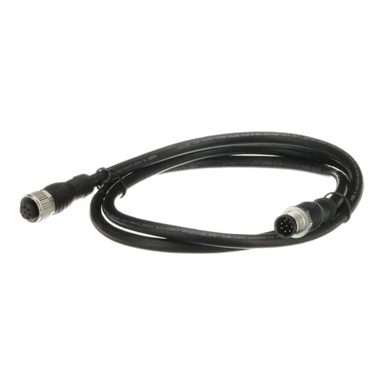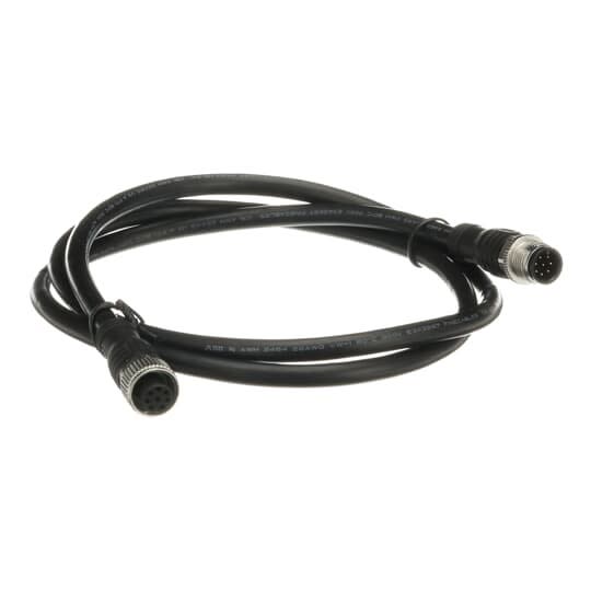 Câble 1m 8x0,34mm2 + blindage avec connecteur droit M12-8 femelle + mâle. Blindage connecté à la broche 7 (0V) du connecteur mâle.