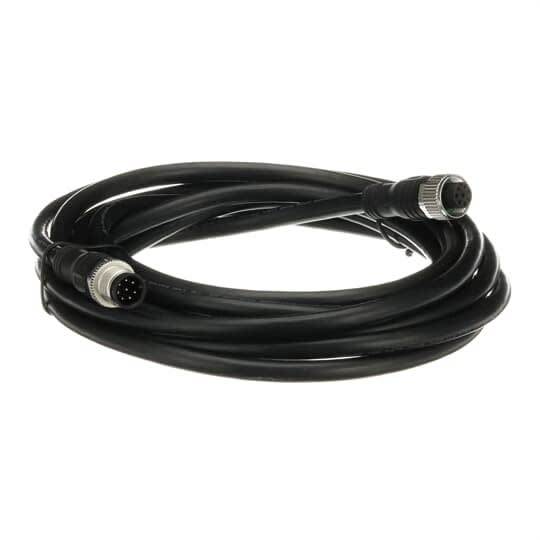 Câble 3 m 8 x 0,34 mm2 + blindage avec connecteurs droits M12-8 femelle + mâle. Blindage connecté à la broche 7 (0V) du connecteur mâle.