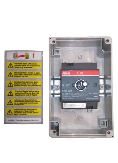 Les interrupteurs-sectionneurs manuels en coffret de la gamme OTDCP constituent une solution économique et fiable pour les applications industrielles DC les plus diverses. Ils peuvent commuter des courants de 16 A à 32 A à des tensions allant jusqu’à 1 000 VDC. Grâce à leurs différentes options de montage, ils permettent une conception très flexible et efficace de l’installation. Conforme aux spécifications CEI, cette gamme assure une performance de coupure fiable pour toutes les intensités de courant sans compromettre la sécurité. La conception de ces produits a été repensée pour permettre leur utilisation à des températures ambiantes particulièrement élevées et réduire les pertes en puissance de 50 %. ABB propose une large gamme d’accessoires pour ces produits : extensions d’axe, poignées, contacts auxiliaires, cache-bornes, etc. Les interrupteurs-sectionneurs en coffret DC satisfont ainsi les besoins des applications les plus exigeantes.