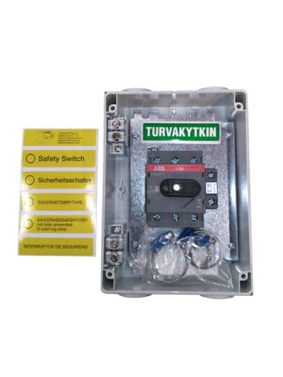 Le boîtier de la série OTE utilise un boîtier en polycarbonate renforcé de verre rigideLe boîtier est protégé contre les UV, protégé contre les jets d'eau à basse pression (IP65), et donc conçu pour une utilisation en extérieur et en intérieurLes entrées de câbles sont filetées et ont des trous pour 2 câbles parallèles et un câble de commande, à la fois du haut et du basLa poignée est cadenassable et conçue pour trois cadenasLe verrouillage peut être contourné, pour la thermographie, etcL'interrupteur est conçu pour un système à 5 fils et possède une borne neutre fixe et une borne PELa protection CEM est utilisée par une plaque métallique en bas, reliée au blindage du câble avec des pinces, incluses dans la livraisonAucun presse-étoupe CEM nécessaire.