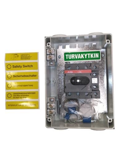 Le boîtier de la série OTE utilise un boîtier en polycarbonate renforcé de verre rigideLe boîtier est protégé contre les UV, protégé contre les jets d'eau à basse pression (IP65), et donc conçu pour une utilisation en extérieur et en intérieurLes entrées de câbles sont filetées et ont des trous pour 2 câbles parallèles et un câble de commande, à la fois du haut et du basLa poignée est cadenassable et conçue pour trois cadenasLe verrouillage peut être contourné, pour la thermographie, etcL'interrupteur est conçu pour un système à 5 fils et possède une borne neutre fixe et une borne PELa protection CEM est utilisée par une plaque métallique en bas, reliée au blindage du câble avec des pinces, incluses dans la livraisonAucun presse-étoupe CEM nécessaire.