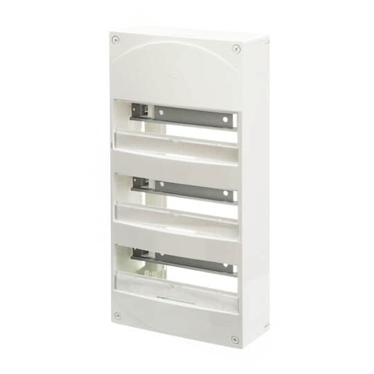 Coffret résidentiel à équiper - Gale'O - 3 Rangées de 13 modules (L=250 mm H=508 mm P=111 mm)- In. 90A - Blanc RAL 9010 - 750°c GWT - IP30 (IP41 avec la porte) - IK07 -montage en saillie ou sur GTL- avec borniers Ph/N/Terre- Porte en option