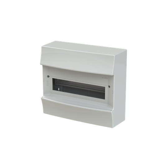 Coffret de distribution sans porte à équiper - montage en Saillie - Thermoplastique - de couleur blanche (RAL 9016) - indice de protection IP41/IK08 - 1 rangée, 12 modules - L297xH262xP119 mm- Tenue au feu 650°c GWT- In max 63A.