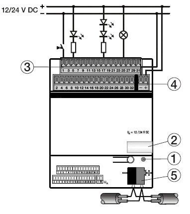 Pour connecter des boutons-poussoirs ou des voyants lumineux à l'ABB i-bus®, par exemple dans un tableau de commande/d'affichage. Il dispose de 32 canaux librement paramétrables en entrées/sorties à l'aide du logiciel ETS. Nécessite une alimentation auxiliaire externe 12/24 V CC.