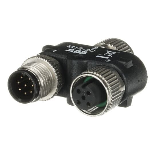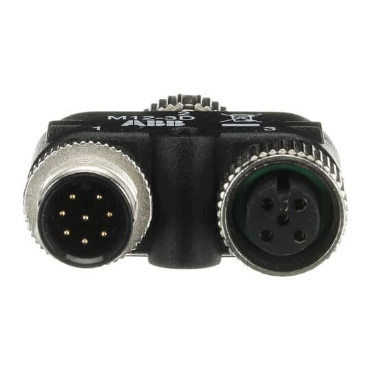 Connecteur en Y M12 pour une installation plus facile d'un pare-lumière avec émetteur et récepteur. Un connecteur femelle M12-8 pour le récepteur (n ° 2), un connecteur femelle M12-5 pour l'émetteur (n ° 3) et un connecteur mâle M12-8 (n ° 1) pour le câblage vers l'unité de contrôle de sécurité.