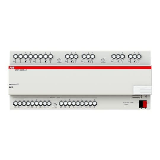 Pour le contrôle de 6 entraînements indépendants de stores / rouleaux ou de registres d'air. Via l'entrée binaire 12, une commande directe des sorties est possible avec des capteurs à interrupteur conventionnels. Les entrées binaires peuvent également être utilisées pour d'autres opérations (par ex. Commutation, variation). Pour protéger les variateurs, les contacts de sortie sont verrouillés électromécaniquement les uns contre les autres.