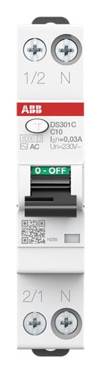 ABB - Disjoncteur Diff. DS301C-1P+N(droite) 1mod.-10A Cbe C-30mA Type AC-6kA-Bulk Pack - L236195