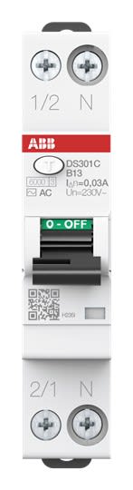 ABB - Disjoncteur Diff. DS301C-1P+N(droite) 1mod.-13A Cbe B-30mA Type AC-6kA-Bulk Pack - L236055