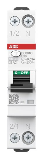 ABB - Disjoncteur Diff. DS301C-1P+N(droite) 1mod.-16A Cbe B-30mA Type AC-6kA-Bulk Pack - L236075