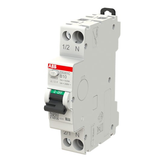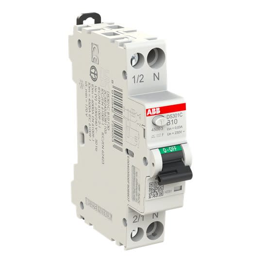 ABB - Disjoncteur Différentiel DS301C-1P+N (droite) 1mod.-10A Cbe B-30mA Type F-4,5kA - L272505